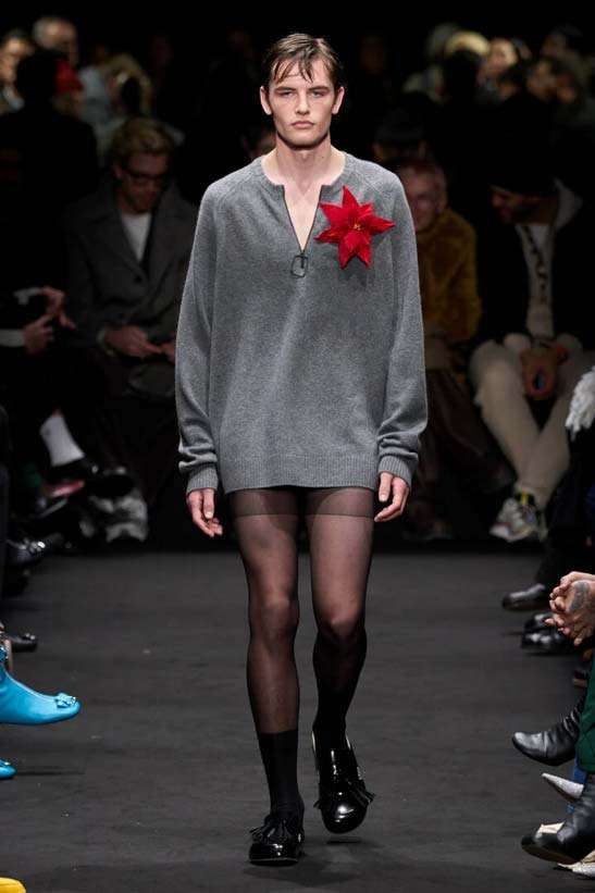 Тартан, костюми, просторі бермуди, плісировані на кшталт кілтів, рибальські пальта: репертуар шотландського вихідця отримав обробку Fendi — функціональний, розкішний, із великою кількістю текстур, які були навдивовижу винахідливими, злегка футуристичними. Серед верхнього одягу — вощені куртки, пальта, бушлати з деталями зі шкіри.